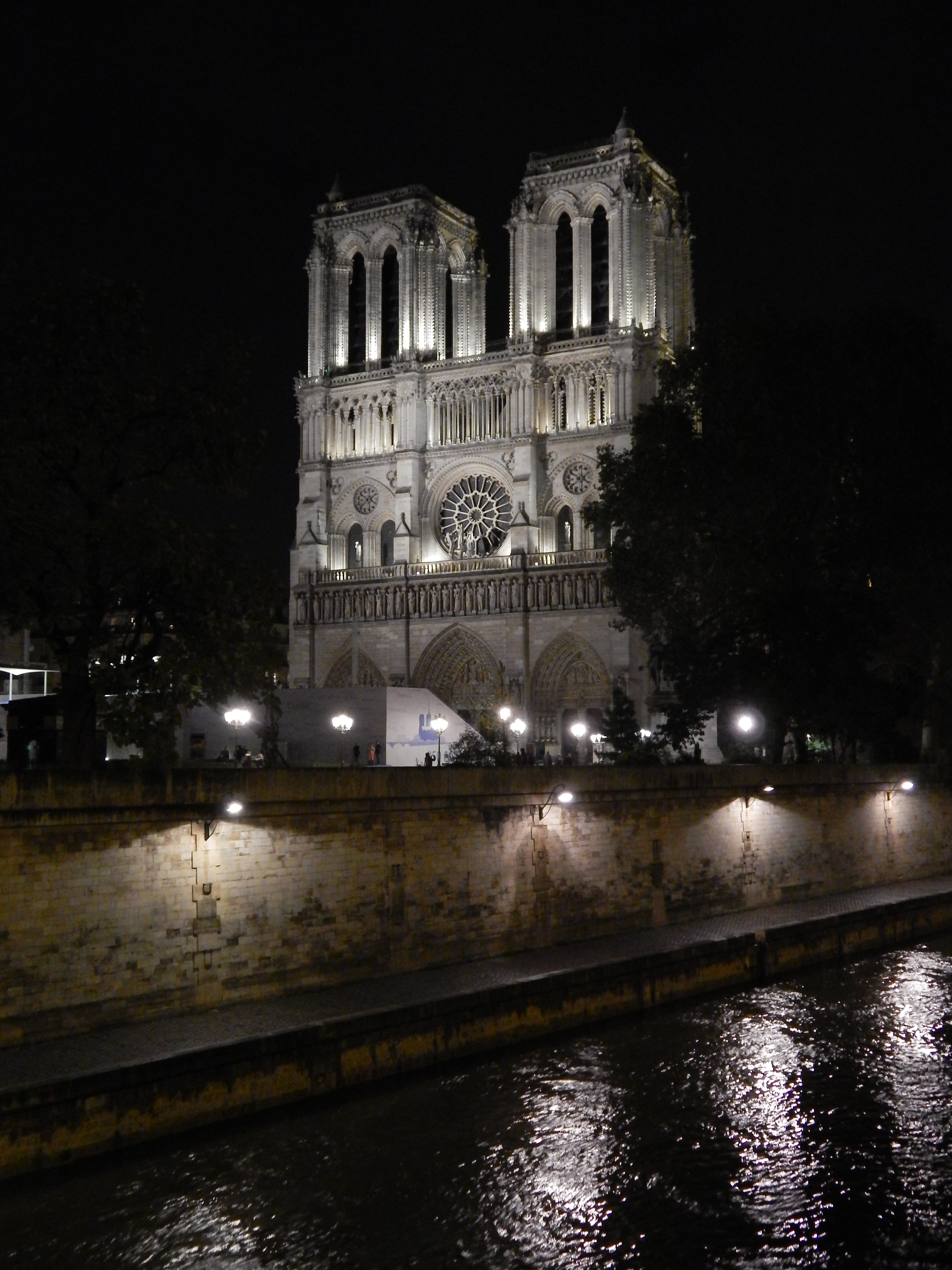 From the tower I rode the regional express subway (Paris actually has two subway systems – the Metro and RER) to the Latin Quarter (Rive Gauche, as they say) to find something to eat and have a look at the Cathedral. After wandering around the district called La Sorbonne, I ended up having a simple baguette panini and sugared crepe from a storefront vendor. The monuments in the city are all wonderfully lit at night, and the streets are still full here at ten pm. I was out for a few hours, walking around, basking in the beauty, and taking pictures. When I returned to my room, I was able to video chat with the same friend back home. That ended my first day here with a huge smile.